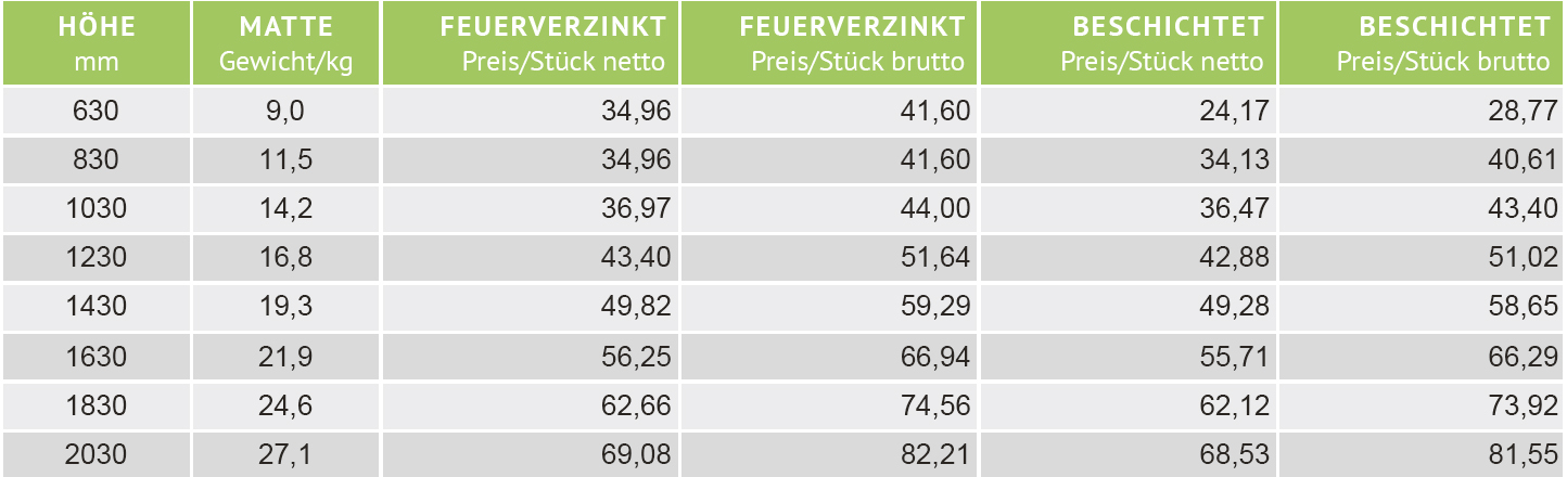 feuerverzinkt nach DIN EN ISO 1461 oder